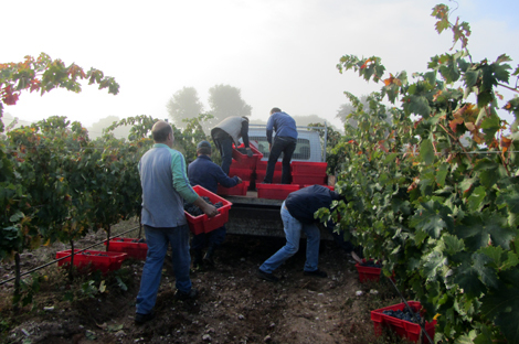 Octubre, pero con la Tempranillo teníamos más dudas y, vendimiando la Syrah, decidimos esperar algún día más; lo haríamos el día 12.